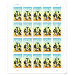 The stamp art showcases a graphic design that includes 4 of the string instruments typically used by bluegrass bands: guitar, 5-string banjo, fiddle, and mandolin. Adorn your mail with a resounding note!